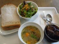 オーガニック、自然派カフェです。 写真はランチのサンドイッチプレート。 コトコト煮込んだスープは体にすっ〜やさしい味。 サンドイッチはパプリカ、アボガド、豆腐、玉ねぎ、トマト等。 バターの代わりにポテトと豆腐で作ったクリームが塗ってあるそうで・・・ 豆腐はごま油と醤油のタレに漬けこんであるそうで・・・ 初めて食べましたが、お・い・し・い〜! |