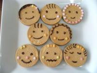 作りました!といっても焼いた訳ではなく市販のクッキーにチョコレートペンでデコレーションしただけです。 かわいい顔がたくさん並びました。 本当はもっとたくさん作ったのですが姪達に食べられました! |