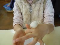 もちつきに向けての練習です。 自分達でつきたてのおもちを“ちぎり”ます。 手にベタベタつかず上手でしょ! 写真は年中さんの女の子。 年少さんでも一度体験済みなので ベタベタになってしまったのは27人中1名。 大根おろしとともに食べました。 昔からの食べ方の知恵も子ども達に伝えます。 |