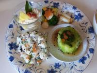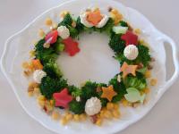 白菜ロールのあんかけ、長ねぎのマリネ等ひとつのお鍋で作りました。 盛りつけると参加者から歓声が・・・ リースサラダのソースは豆腐と練りごま デザートも豆腐使用のチーズケーキ風。 見た目は洋風ですが味は中華風。 野菜ばかりでもボリュームいっぱい、満足感があります。 |