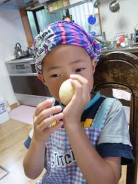 いい手つきです! そして、 出来上がると・・・ ちょっと太めですが 立派なうどんが出来ました! “みて!私が作ったの!”と 言わんばかりのかわいいお顔です。 |