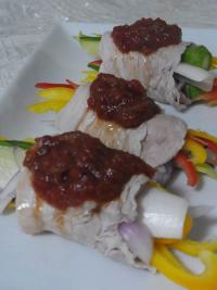 紹介するメニューの試作です。 小女子のつくだ煮に入れて 和風のトマトソースを作りました。 今日は暑いのでコチジャン添えて食べました! |