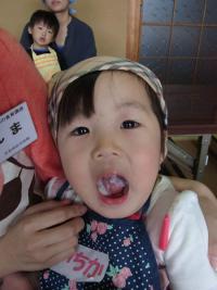 1回目はごはんのお勉強。 お寿司のケーキを作りました。 まずはモグモグよく噛む練習。 お口の中を見せてもらいました。 おかゆ状になっていたらOK! 「あま〜い」味に変身しています。 バターナイフとまな板できゅうりや人参の煮物を切った後、 プリンカップでおすしのケーキを作りました。 |