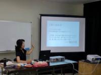 第1回目はお母様達へのお話。 様々な食情報があふれて過ぎています。 どんな食事をお子さんに食べさせたらいのか迷っているお母様達のお手伝いができればと思います。 第2・3回目は親子でクッキングをしますよ。 会場の生活家庭館では2階までみごとなゴーヤのカーテンができていました。 |