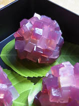 “ハーブティのあじさい羹”を試作。 紫、ピンク、白と3種類の寒天をさいの目に切って白あんのまわりにくっつけてあります。 今日はローズヒップティ、レモンマートル、ぶどうジュースで3色。 当日はぶどうジュースの代わりにブルーのマロウティーにしようかな? 意外と簡単にできる和菓子です。 |