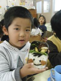 片付けが終わってお昼の時間に教室にもどったら かわいいお顔のお弁当を発見! そっくりです。 |